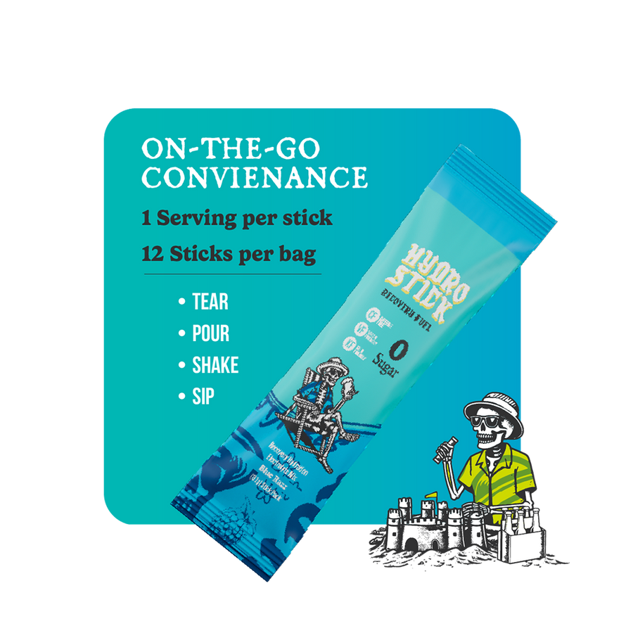 Convenient: 12 easy-to-use stick packs for hydration support wherever you go.